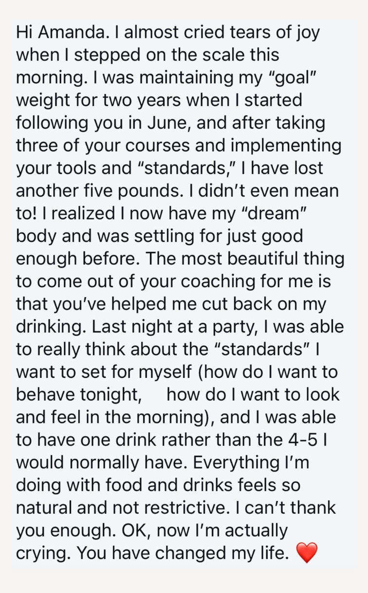 I help women lose weight without giving up the foods they love by changing how they think, decide, and show up daily.